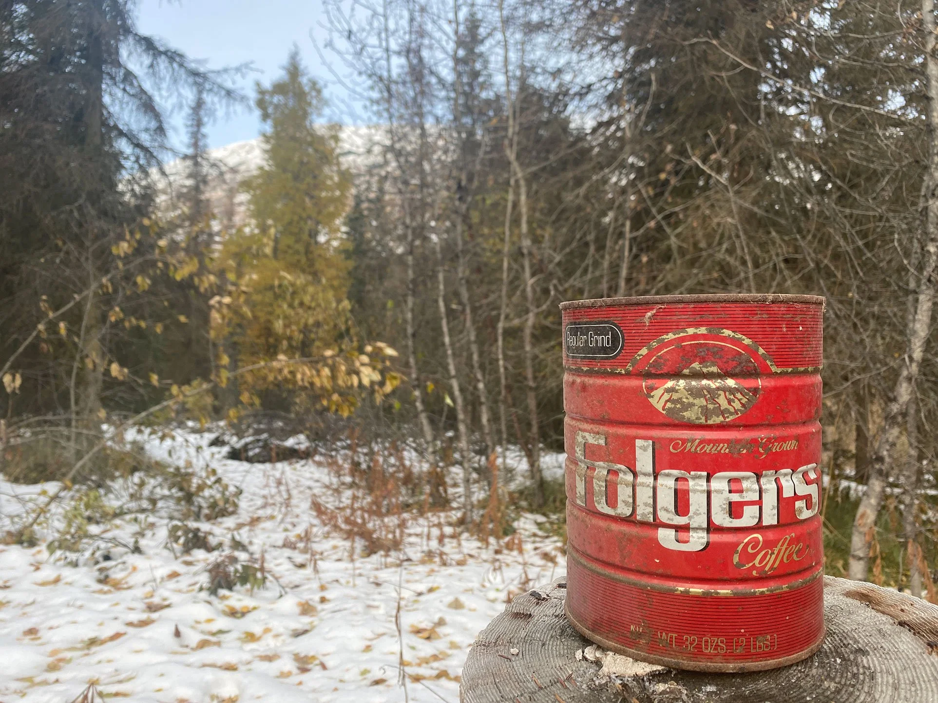 “Mountain Grown.” A vintage coffee can left behind by my parents. From the 1970s.